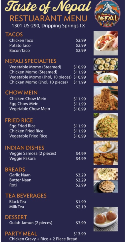 If you're looking for an authentic taste of Nepal in the heart of Dripping Springs, Texas, look no further than Taste of Nepal. This charming Asian restaurant, located conveniently at 1301 US-290, is a culinary gem that brings forth the rich flavors and spices of Nepalese cuisine, perfectly complemented by Indian inspirations.
